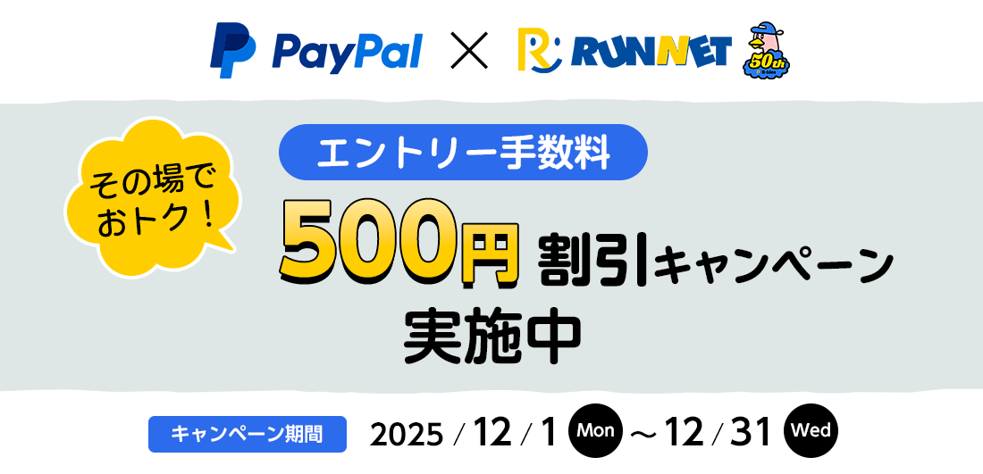 ・エントリー手数料が500円未満の場合、そのエントリー手数料が割引となります。差額をエントリー料から割引はいたしませんのでご了承ください。