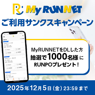 MyRUNNETをご利用の皆様へ感謝を込めて、抽選で1,000名様にRUNPOが当たるキャンペーンを実施します! ぜひこの機会に、日々のランニングに役立つMyRUNNETをご活用ください。