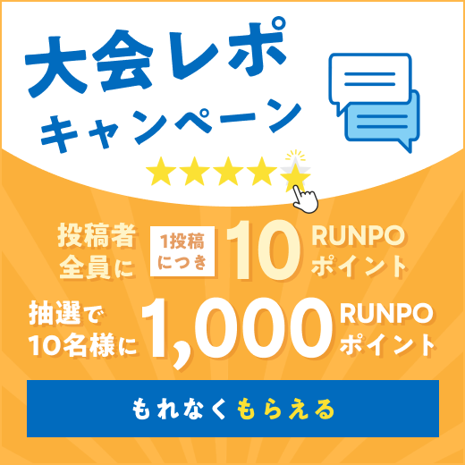 10月~12月に参加したレースの大会レポを書いてキャンペーンに応募すると、1投稿につきもれなく10ポイント(RUNPO)をプレゼント!