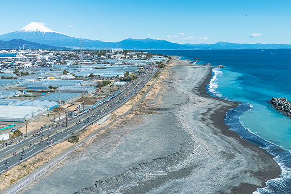 徳川家康ゆかりのポイントや、世界遺産・富士山、駿河湾という素晴らしい景色を眺めながら走れるコースは、いたって平坦で記録を狙いやすいフルマラソン(公認コース)です。