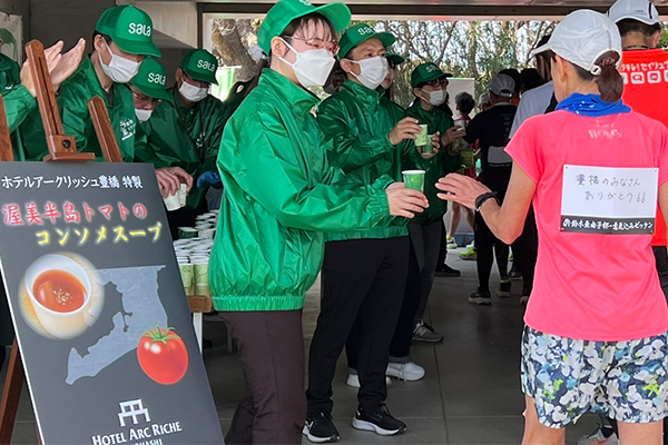 参加賞Tシャツを選定したり、昨年もコース上でランナーにハイタッチでエールを送ってくれるなど大活躍でした。