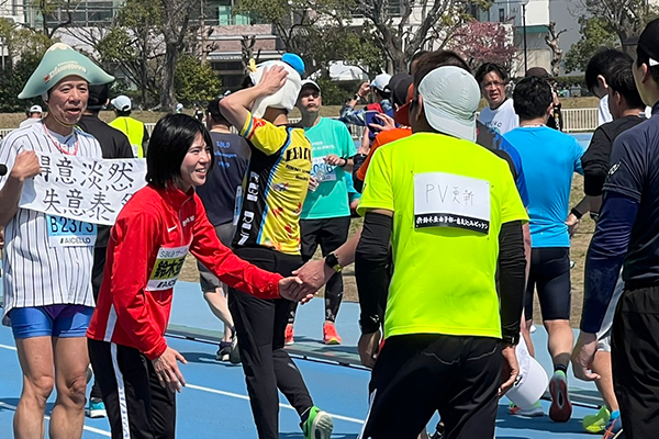 地元豊橋が生んだ名ランナー、鈴木亜由子選手のハイタッチで気分も盛り上がります。