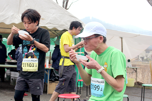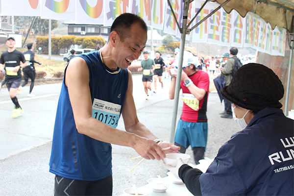 丹波篠山の名物「しし汁」がたっぷりふるまわれるのがこの大会。コース上(昨年は2カ所)とフィニッシュ会場でふるまわれるその旨味たっぷりの美味しさは、折り紙付き!