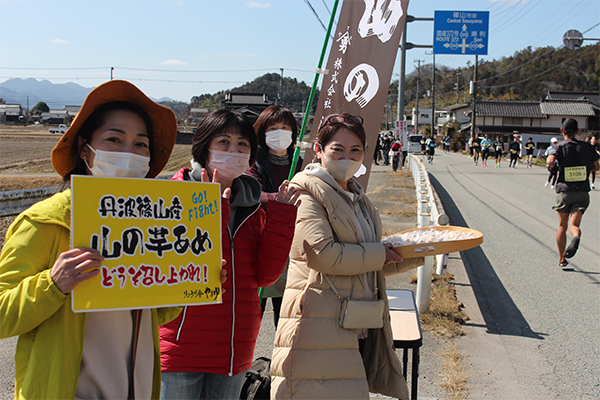 名物の「しし汁」や地元銘菓が登場する充実のエイド、この土地ならではの伝統工芸「丹波焼」の完走メダルなど、うれしいおもてなしも!