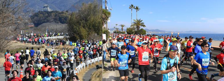 国宝・犬山城を仰ぎ見ながら、風光明媚なコースを駆けるハーフマラソン。犬山市街地から田園地帯と日本ライン、木曽川沿いを走るフラット基調のコースを走ります。一般ハーフは予想タイム順に4段階に分かれてスタート。発着会場の内田防災公園は名鉄犬山駅、犬山遊園駅から近く、アクセス良好(ともに名鉄名古屋駅から直通で約30分)。ハーフマラソン、10kmの部ともに陸連公認コース。「お城マラソン」参加大会。