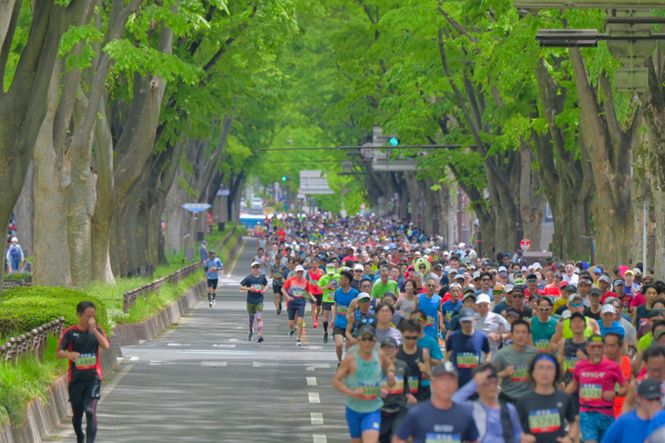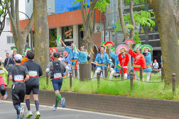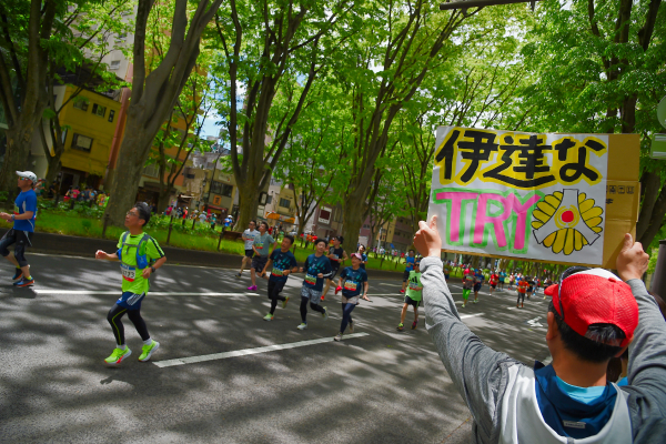 仙台の中心地を存分に走れるこのレース。沿道の多くのボランティアスタッフや仙台市民の皆さんの温かな声援を絶えず浴びながら完走を目指すことができます。