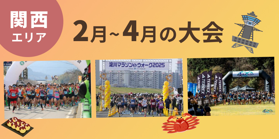 関西エリアで2月~4月の期間に開催される10km以上の大会をまとめてみました。