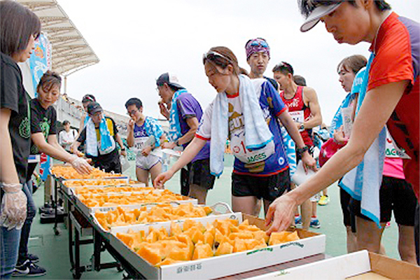 さらにフィニッシュ後には、特産の「がごめ昆布」を使った味噌汁や新鮮な牛乳に加え、さらに一品選べるふるまいも。例年、塩辛添えのじゃがバター、いかめしなどローカル色豊かで楽しくなるラインナップです!