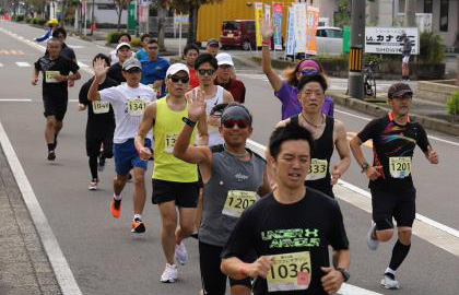 香美町小代区内の町道等を利用した、いくつものアップダウン、うねりのある「残酷」な24kmのコースを走ります。最大高低差は410m。団体戦(男女問わない4名の合計タイムで順位を決定)あり。予想タイム順のウェーブスタート採用。前夜祭あり(おじろドームにて)。コスチューム賞の表彰あり。2024年「全国ランニング大会100撰」選出大会。