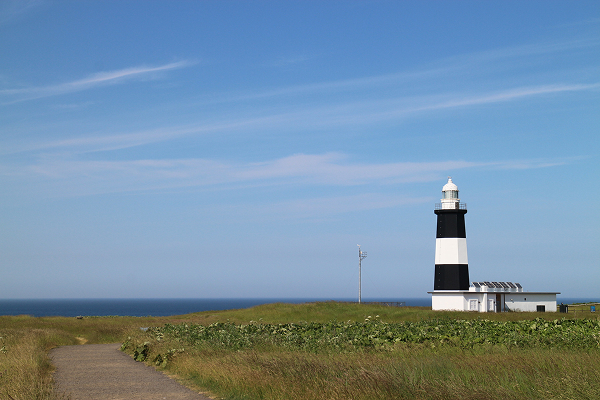 数々の映画やコマーシャルのロケ地としても有名な能取岬と白い灯台。はるかに知床連山も眺められます。