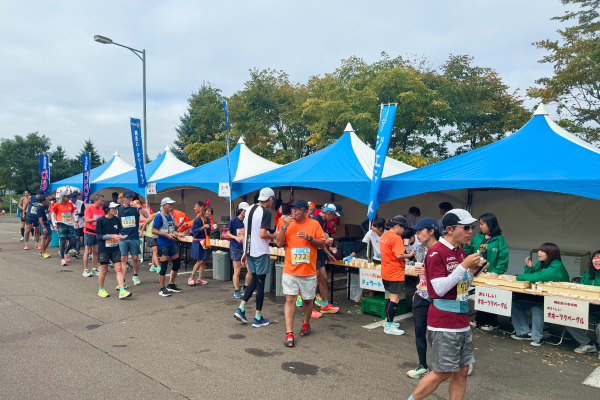 5km以降、約2.5km毎に東京農業大学生物産業学部の学生が中心となって運営する元気(エイド)ステーションが設置され、次は何が出るかワクワクしながら走れます。