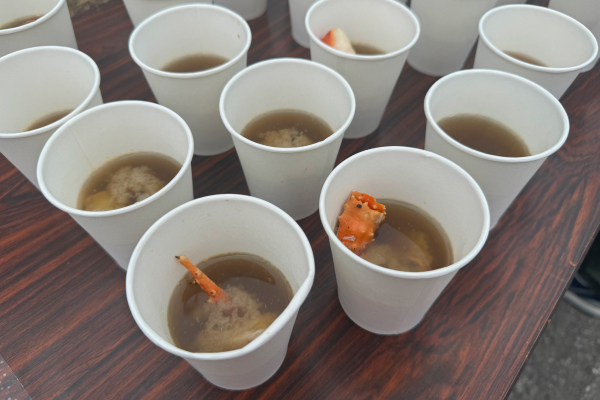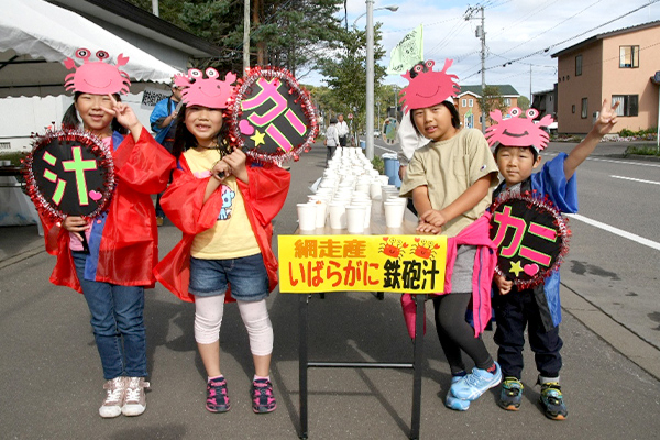 しじみ汁や長天(かまぼこ)、あばしり和牛、かに汁、しじみ汁、ジェラート、ホタテ…、私設エイドも含め、多くの網走グルメが次々と登場します。