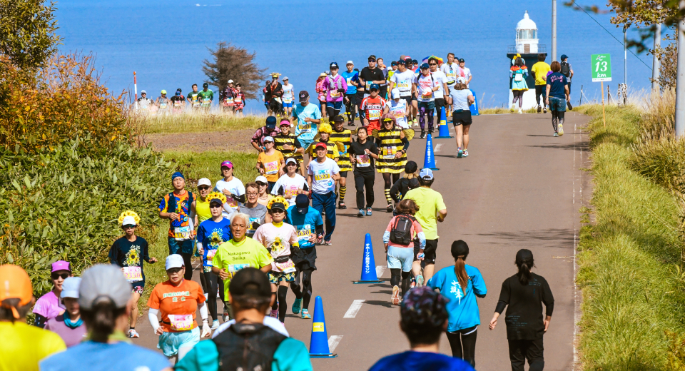 オホーツク海を望む雄大な北の大地を駆け、満開のひまわり畑へのフィニッシュまで、地元の方々の温かなホスピタリティに何度も感動できるフルマラソン(公認コース)です。