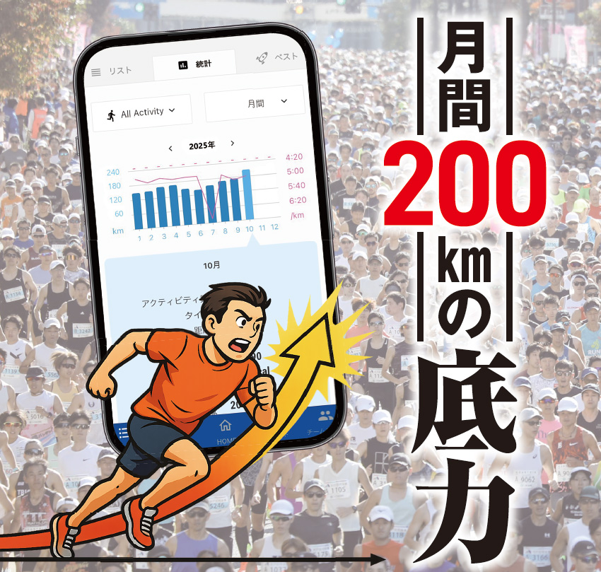 「サブフォーを狙う方には月間200kmを “おいしい宿題” として指導しています。100km台から200kmに延ばすのは、距離が増えた分だけ走力がアップする“ボーナスステージ”です」(こわだ君)