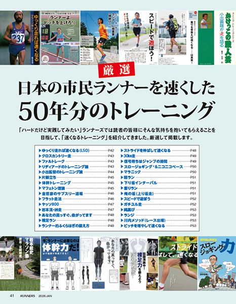 それから約50年、11月21日発売の2026年1月号を「創刊50周年記念号」として制作しました。これまでの感謝を込め、この号では「ランニング界50年の挑戦史」を特集。50年間で取材した方々からお寄せいただいたメッセージも紹介しています。