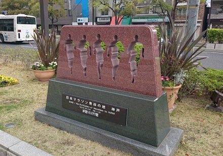 東遊園地近くには「日本マラソン発祥の地」の石碑が |