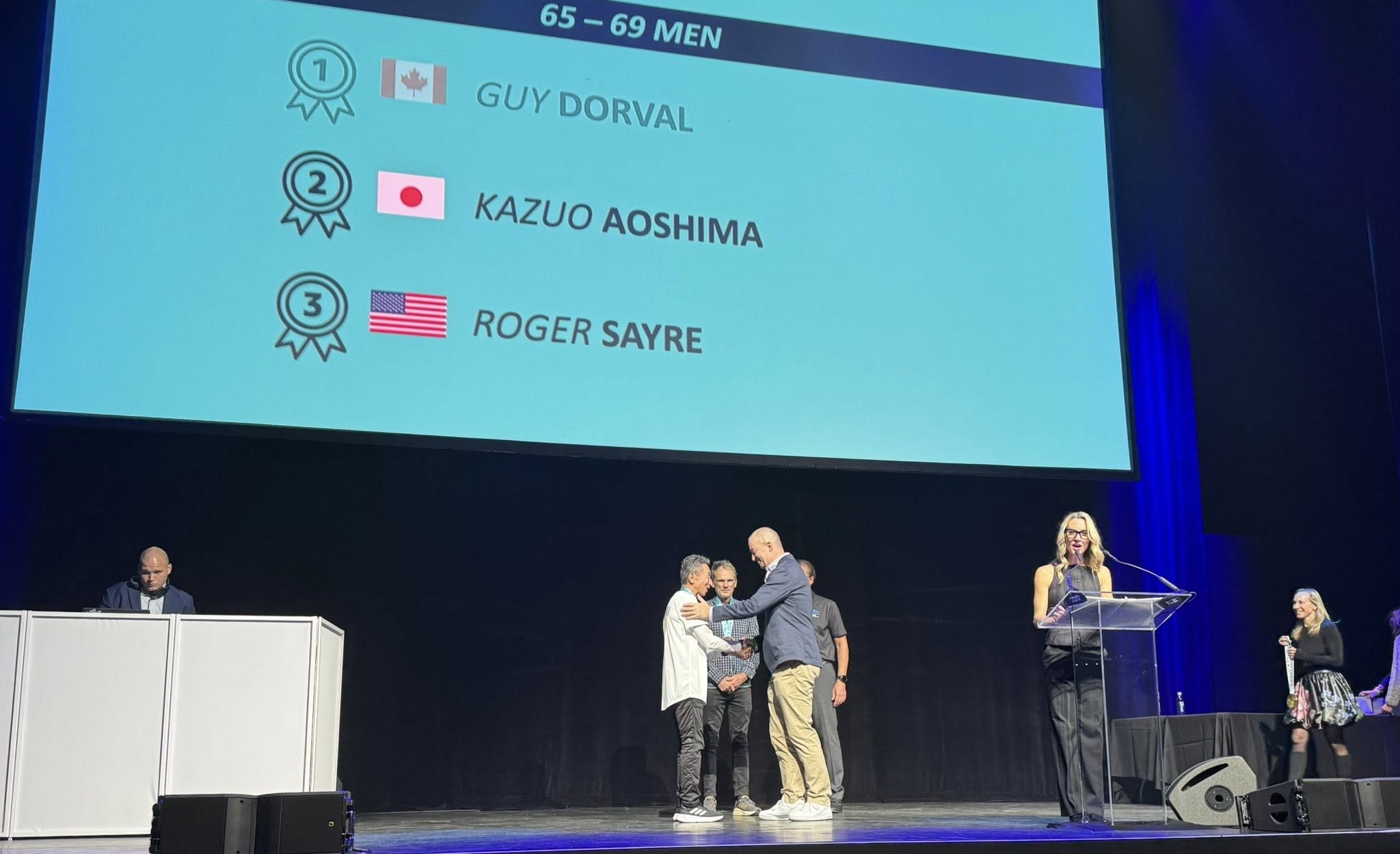 3月に43年間務めた民間企業を定年退職して、退職後に一度は参加したいと思っていたこの年代別世界選手権で2位という好結果を出すことができ、アワード・セレモニーの壇上において、大型パネルに映し出された日本国旗と自分の名前を見ながら、銀メダルを受け取ることができ、人生においてこの上ない喜びでした。