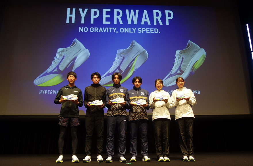 ミズノは12月2日、厚底レーシングシューズ「HYPERWARP PURE」「HYPERWARP ELITE」「HYPERWARP PRO」の3モデルを発表しました。