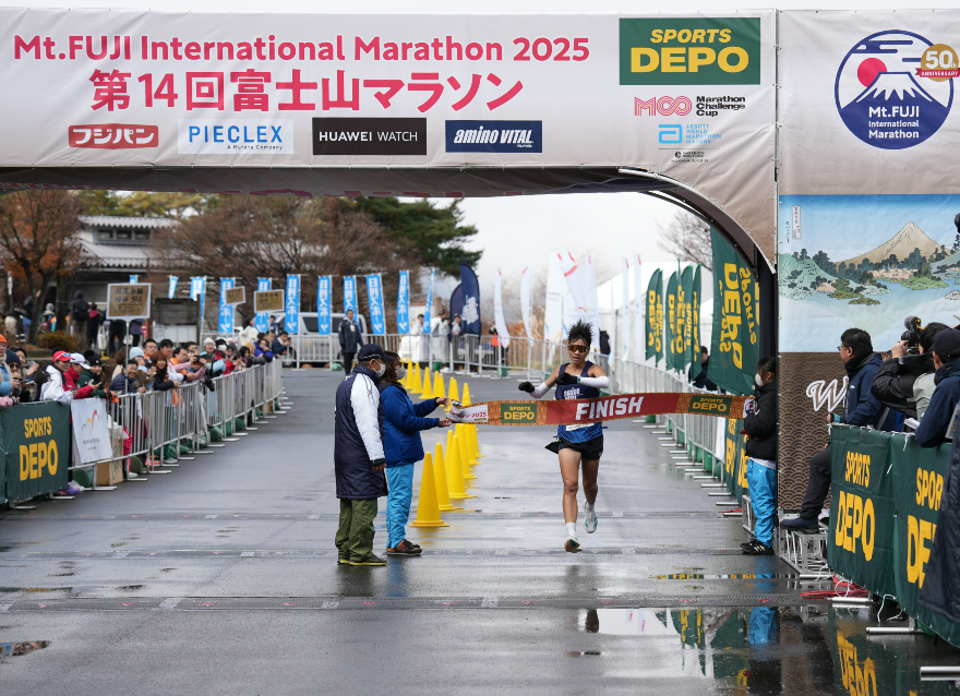 「普段は10kmレースを中心に走っています。優勝してとても興奮しています。スタートからすごく大勢の人が応援してくれて、ここで走ることができてとてもうれしい。生憎の天気で、富士山は望めなかったですが、それでも河口湖の側を走るコースはとても良い景色で楽しむことができました。来年3月に大学を卒業し、卒業後はスポーツ業界で働きたいと思っています。ランニングは続けます。ランニングは私にとって自分自身を向上させてくれるもの。日々パフォーマンスが少しでも良くなるよう努力することが、自分自身の成長につながっています」と語ってくれました。