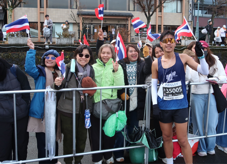 河口湖1周を1時間28秒(速報値)で制したのはタイから参加したWitchaya Saechangさん。タイ北部のメーファールアン大学でスポーツサイエンスを学ぶ22歳の大学生で、ランニングを始めて4年。