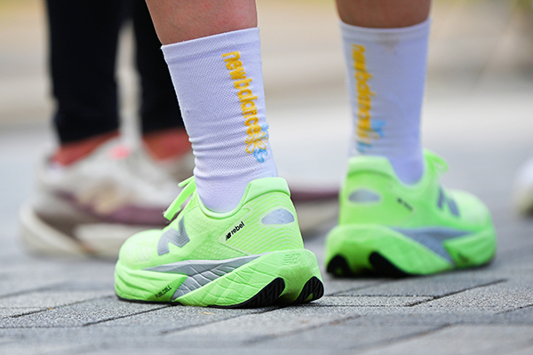 軽くて足の運びがスムーズになった印象です。素材も柔らかく包み込まれるようで、指も動かしやすい。反発があり、足を置いただけでパーンと前に進みますが、これはカーボンプレートの位置が変わっている影響があると思います。Nが小さくなったデザインもいいですね。