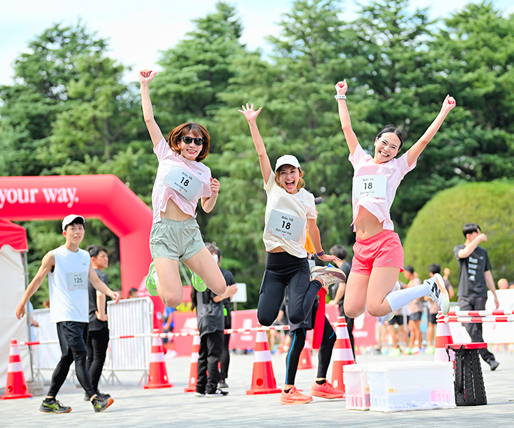 「Run your way.Park」イベントでは、上位入賞を目指してタイムを狙う強者から、仲間と力を合わせて走るグループ、特別プログラムのヨガやロゲイニングを楽しむチーム、アパレルに興味津々の参加者等、目的や楽しみ方が異なる様々なランナーが一堂に会しました。