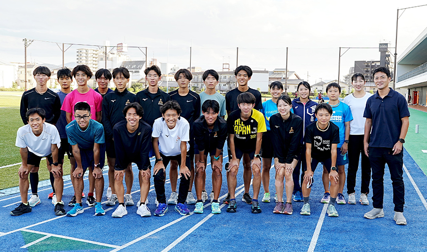 部員は男女合わせて約100名。竹澤コーチの就任から3年が経ち、第102回関西学生対校選手権(関西インカレ1部)の男子ハーフマラソンでは、藤田剛史選手が大学初となる優勝を果たすなど、着実にチーム強化が進んでいる。