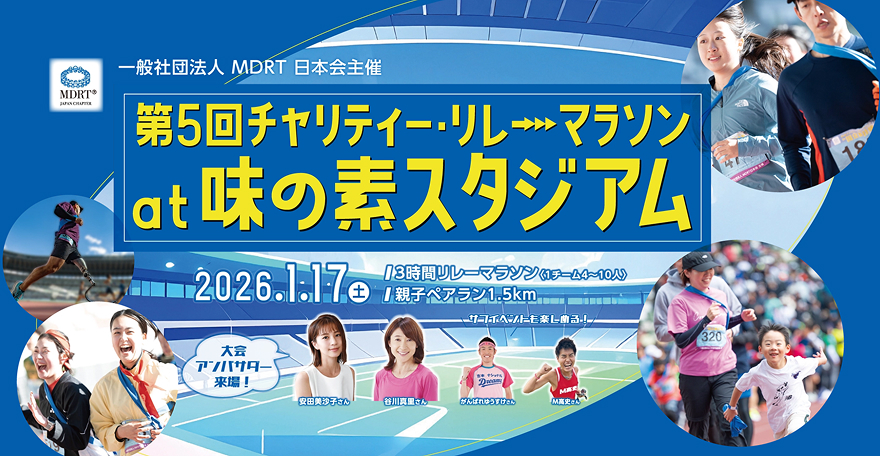 今回で第5回大会となる「一般社団法人MDRT日本会 チャリティー・リレーマラソン」が、レイトエントリー受付中です。