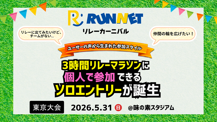 そんなランナーの声から、今年の「RUNNETリレーカーニバル」に「ソロエントリー」が誕生しました!!